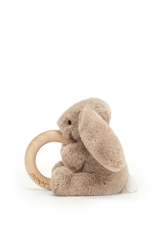 Jellycat Soft Toy - Bashful Beige Bunny Wooden Ring Toy (13cm tall)