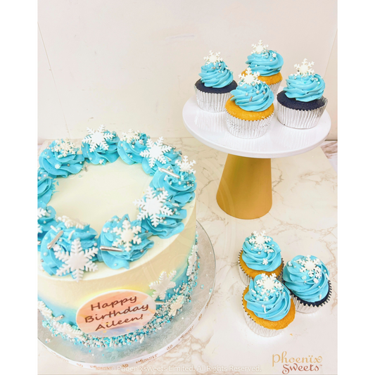 Themed Party Combo - Frozen Elsa Cake and Cupcake Tower (18pc)