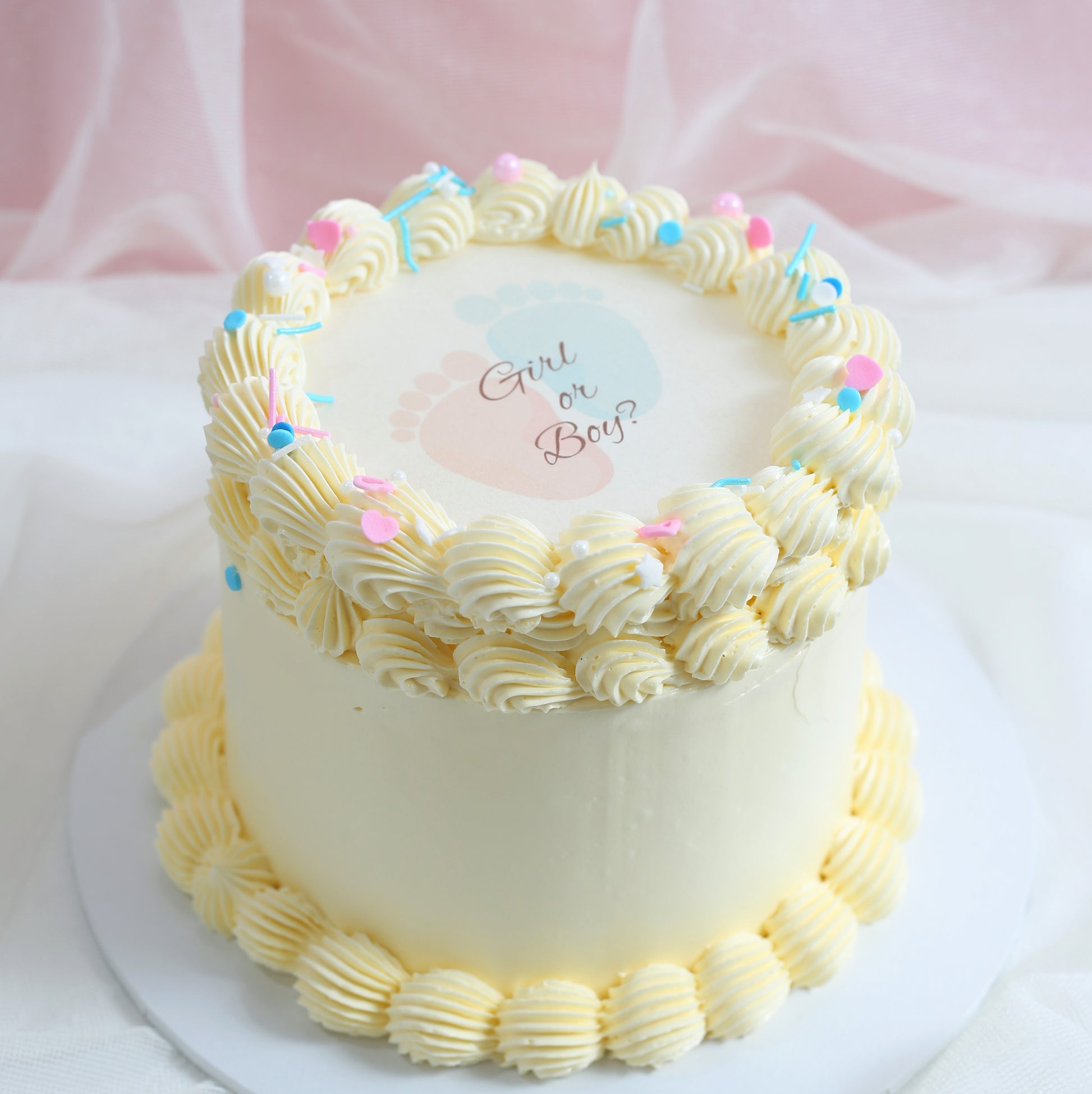 The flavour of the surface butter cream is Vanilla. For the cake flavour inside, you may choose from: