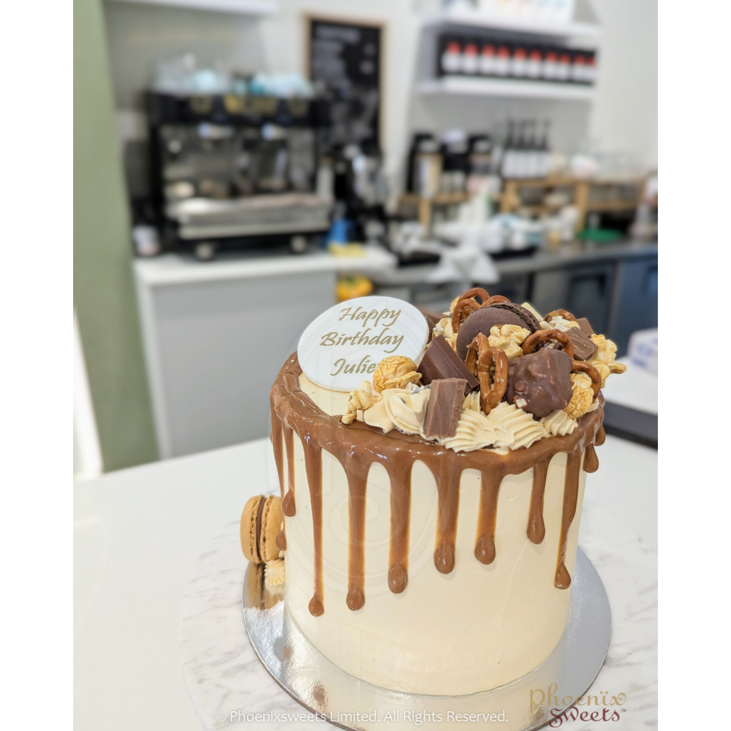 The flavour of the surface butter cream is Caramel. Layered with caramel butter cream and caramel paste.