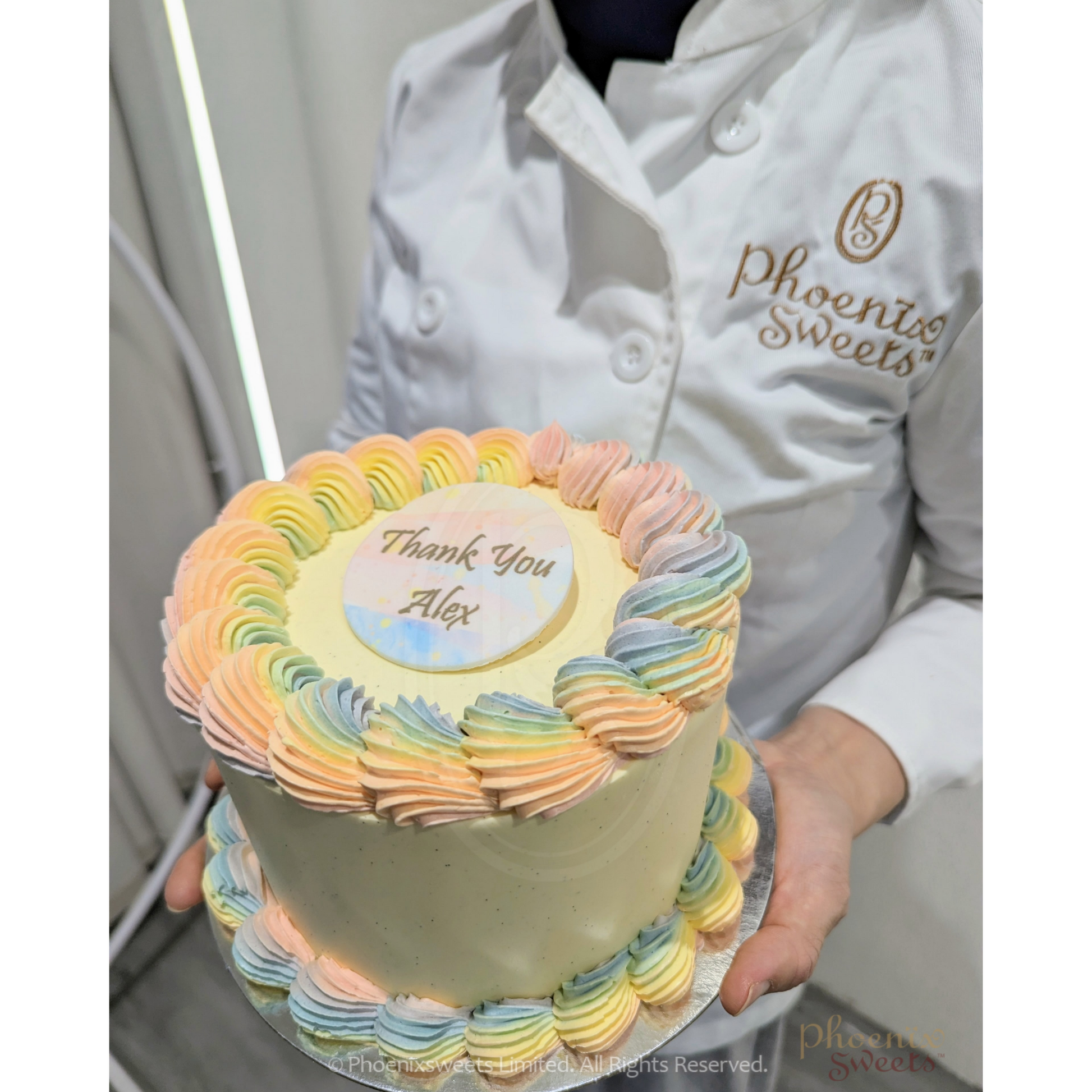 Make any occasion extra special with the eye-catching Rainbow Ring Cake from Phoenix Sweets Cakery. This showstopper cake is a decadent treat for the senses, featuring the vibrant rainbow colours on the top of the cake with silky buttercream frosting.