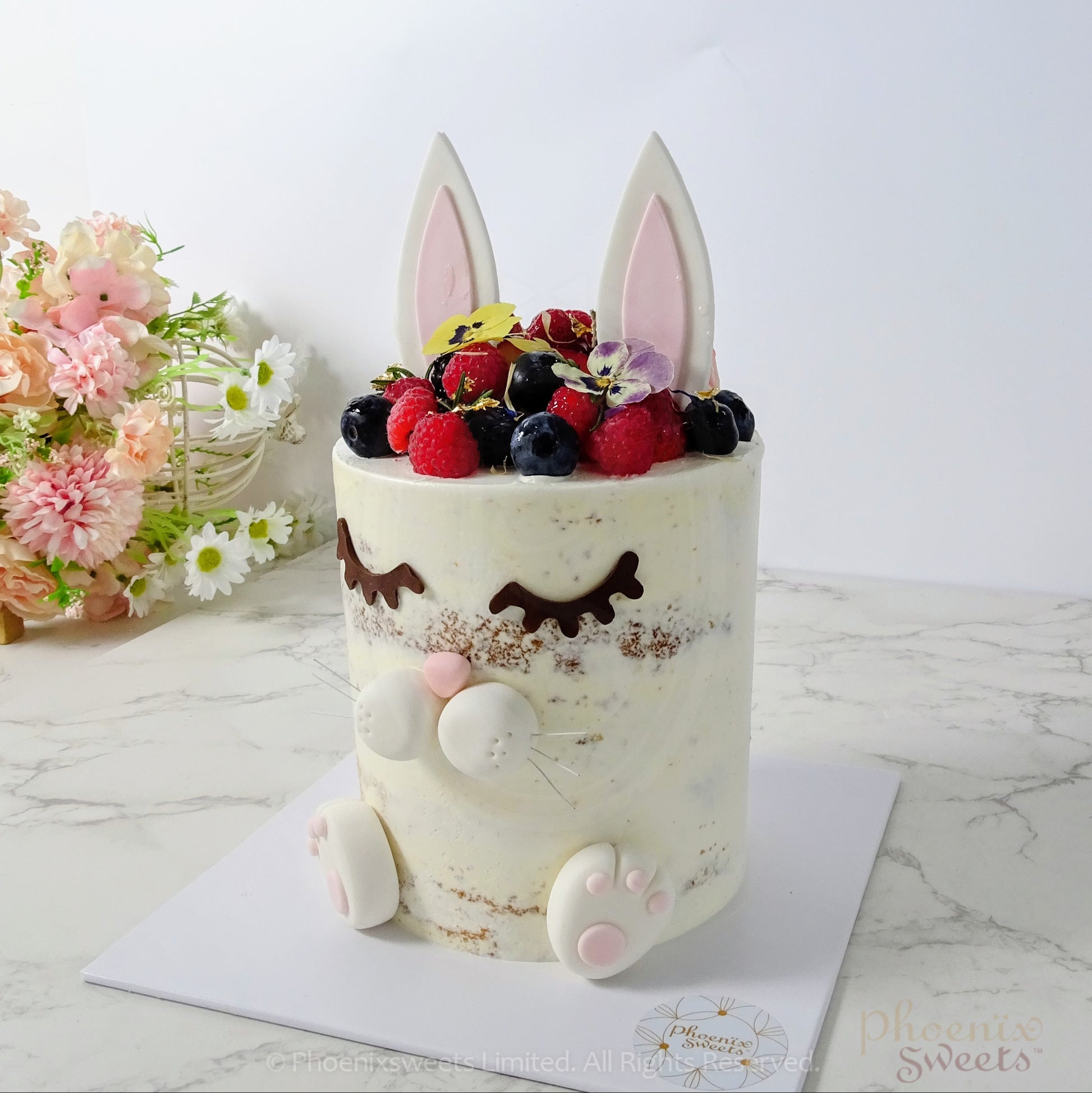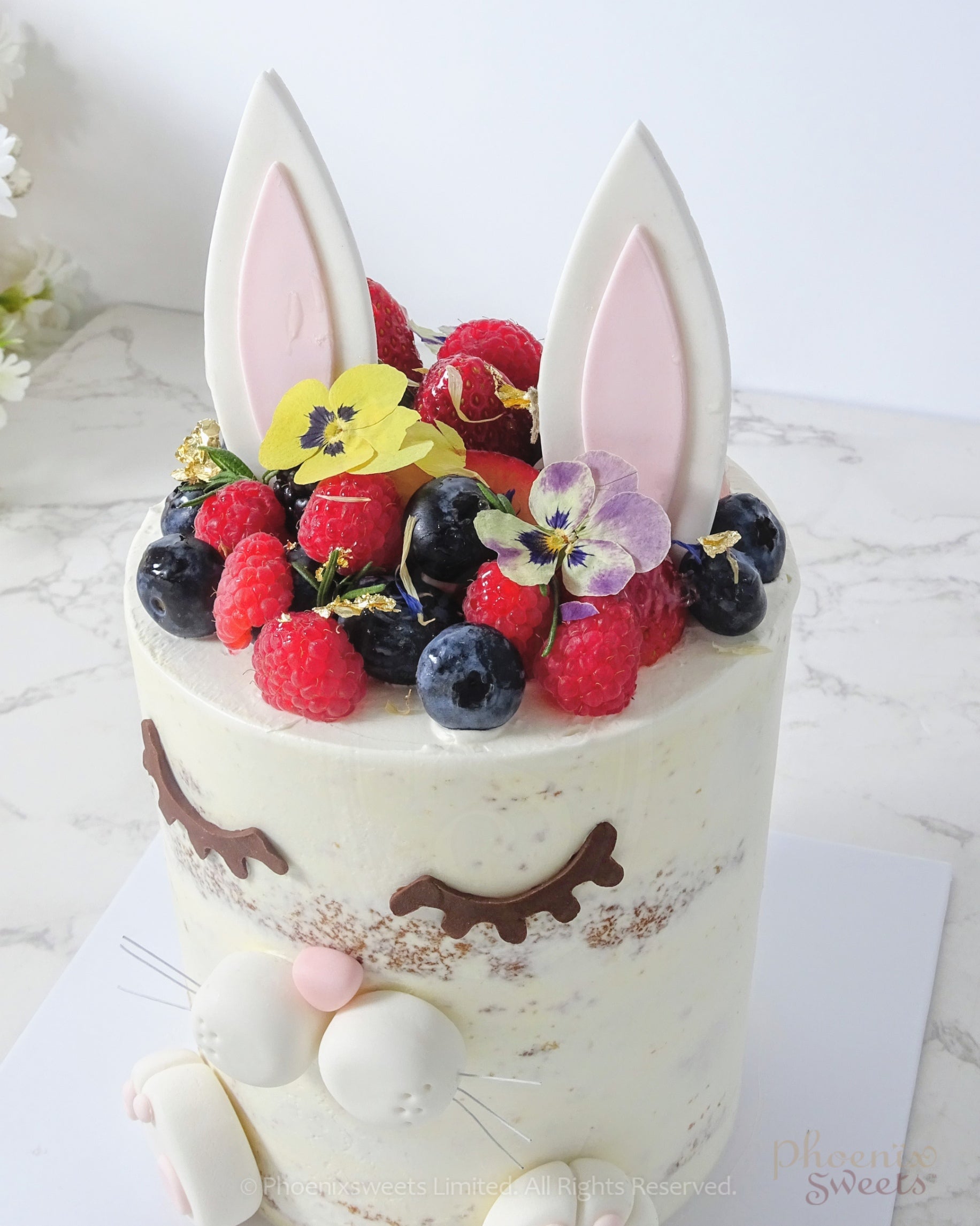 Phoenix Sweets Cakery's Semi Raw Rabbit Cake is a cute and mouthwatering design focusing on the fresh flavours of premium ingredients. Layers of vanilla cake are filled with lemon cream and Italian lemon buttercream, then topped with seasonal fruit. Perfect for celebrating Birthday, Anniversary and any happy gathering!