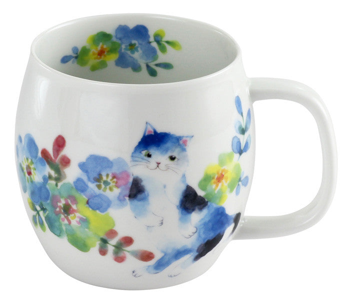 This is a single mug with anemone (blue) and kitten. Gift box packing.
